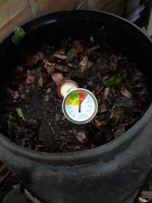 Temperature: There are at least two conditions when a bin is not stirred or mixed. The first one is the hot condition: That is the bin is still heating up and has not completed its thermodynamic stage. We do not want to disturb the intense microbial activities. We measure temperature and volume as a matter of course; and any bin whose temperature is greater than 30℃ is left alone for a week. However, any operating bin is mixed if it has not been stirred/mixed for about three weeks. The second condition is frost. We can see prolonged periods of sub-zero temperatures in Leeds. During these periods we simply do not touch the compost bins.