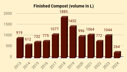 - The finished compost (FC) annual average output: ~ 1030L